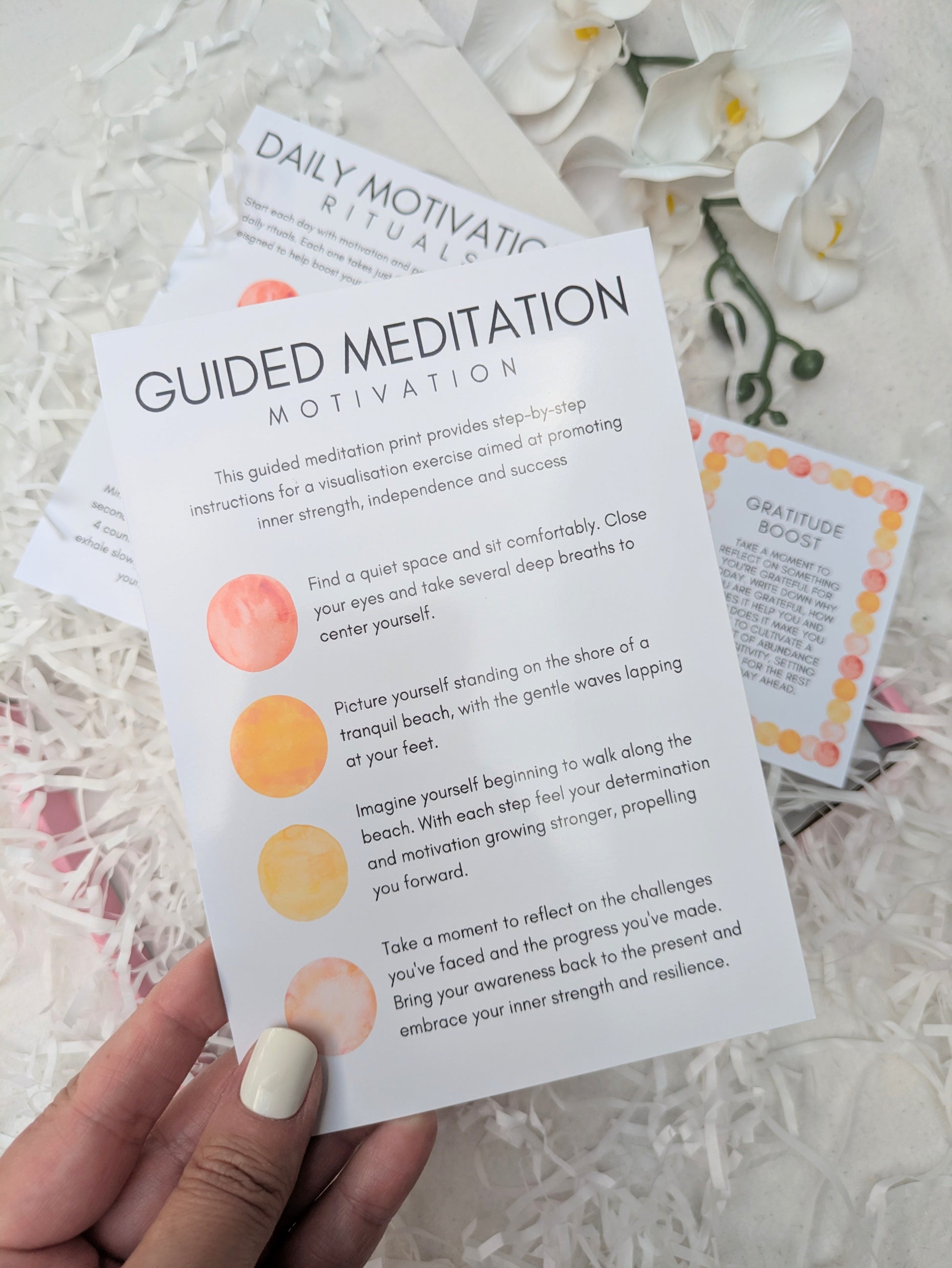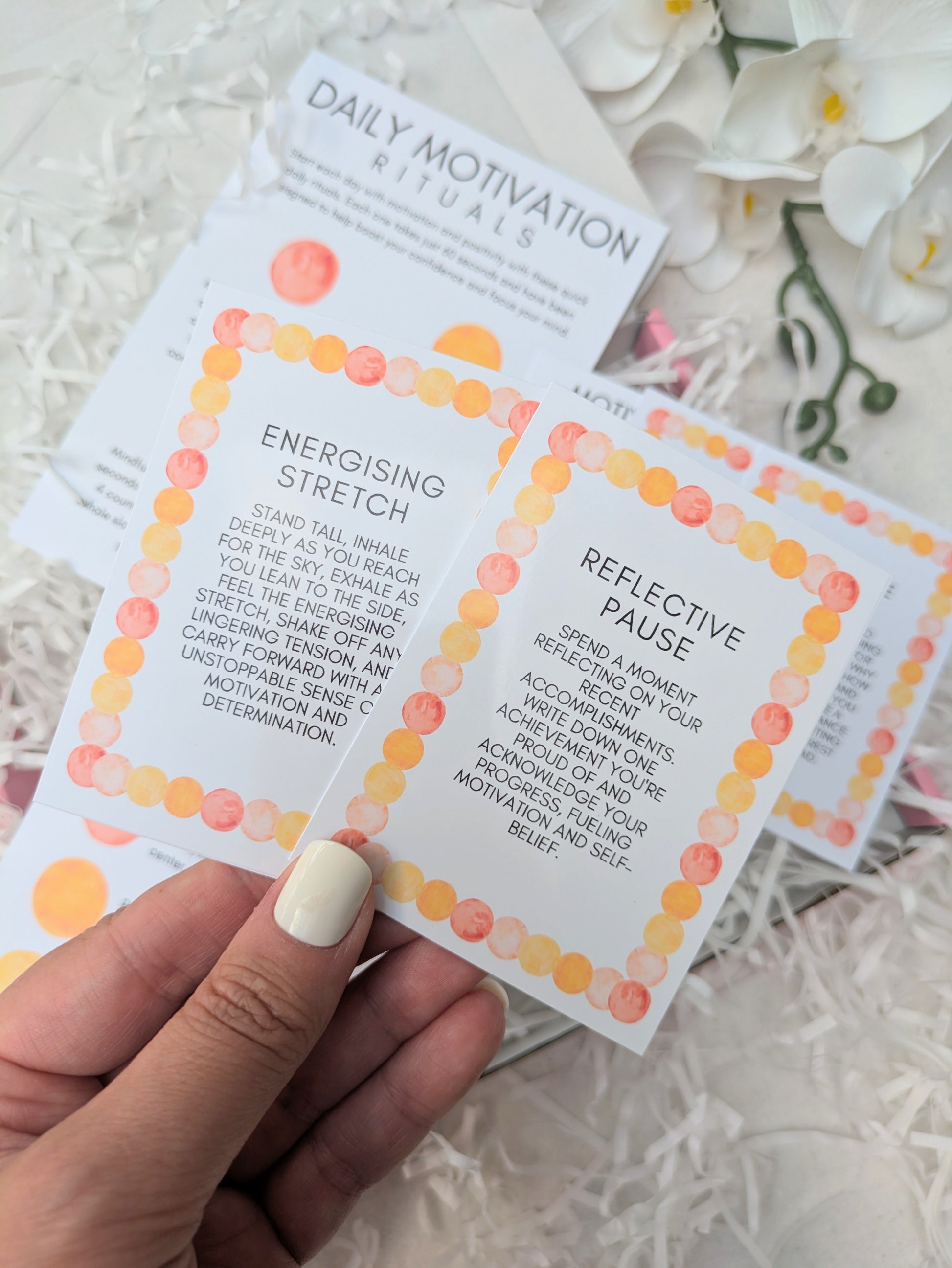 A Daily Rituals for Success Print featuring four different rituals you can use each day to help motivate yourself, each one takes around 60 seconds and each is designed to give you a boost!